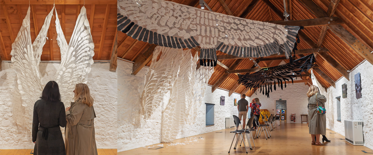Symbols of Mobility was described by Maureen Kennelly, the Director of Arts Council, as work embracing art, craft and activism as a strong storytelling intersection to hold messages we all have so many questions about.The work captures her vision that present past and future are in constant dialogue.